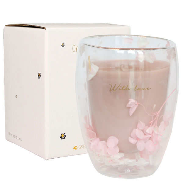 De Sojakaars “With Love” – Green Tea Time is een luxe geurkaars met een verfijnde uitstraling en een frisse, rustgevende geur. Dankzij het dubbelwandige glas met gedroogde bloemetjes is deze kaars een echte eyecatcher in elk interieur.