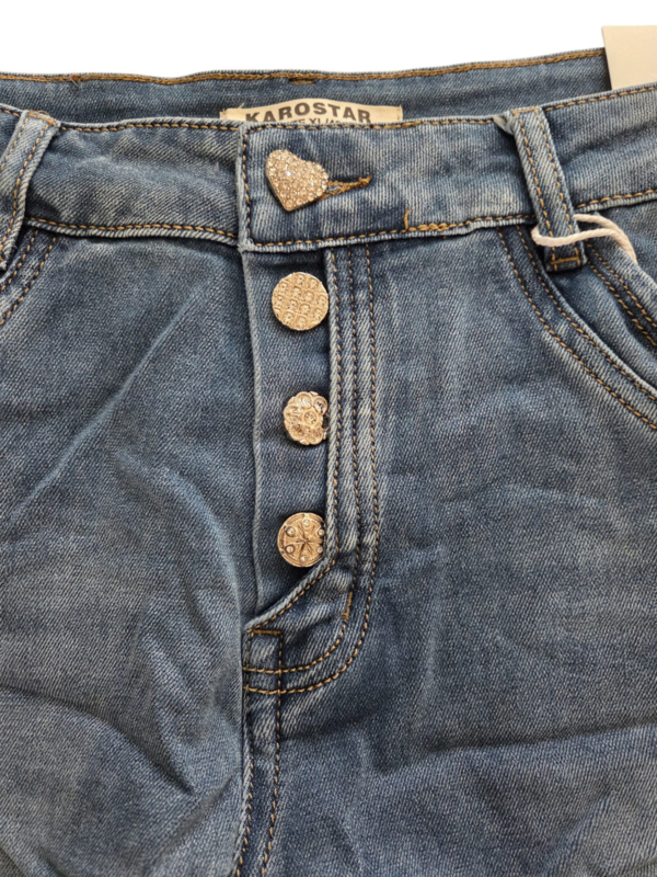 Karostar Soft Jeans Straight Leg met Strass Sierknopen en Comfort Stretch